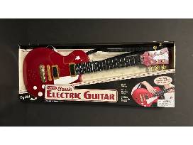 This is a real looking electric guitar that can make music in a few different ways. Battery operated, it produces realistic electric guitar feel and sounds. It features steel strings, an electric guitar rhythm track, and multiple guitar solo sounds. For ages 5+, batteries included.