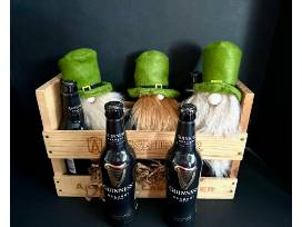 Created by local author Janet Martin, this Irish Gnome Gift Basket is sure to bring smiles this holiday season! Filled with party items including 3 Bottle Top Gnomes, 1 Six Pack of Guiness Beer, and a bottle of St. Brendan's Irish Cream Liquor all packaged in a robust wooden box.