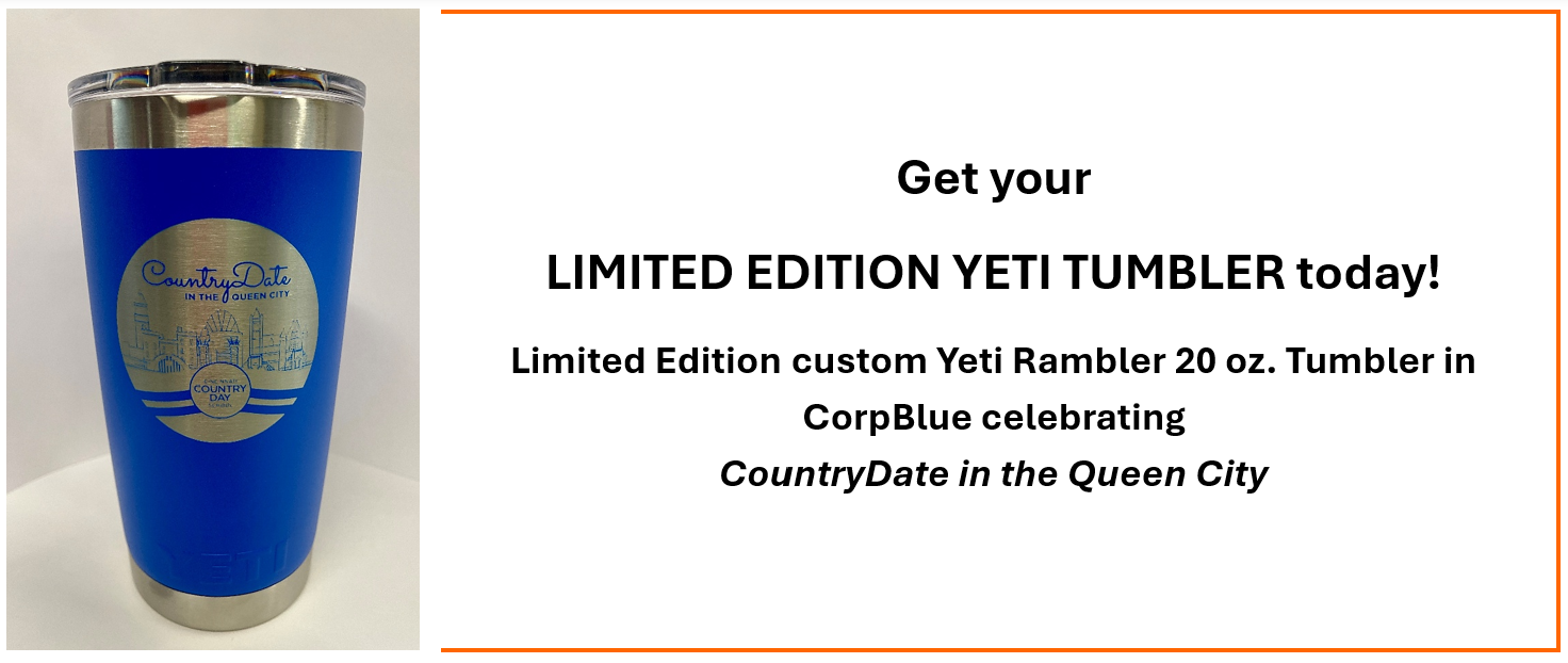 CLICK HEREDon't miss your chance to be one of only 20 people sipping from this limited edition custom CountryDate in the Queen City Yeti 20 oz. tumbler. The CorpBlue color is perfect for showcasing your CCDS pride for years to come!