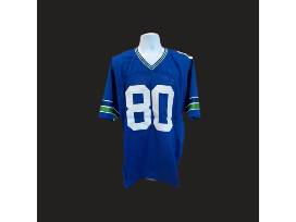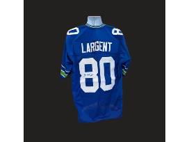 Steve Largent (Seattle Seahawks #80) Autographed replica Jersey. Autographed at Gridiron Greats Hall of Fame 2024.