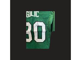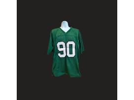 Mike Golic (Philadelphia Eagles #90) Autographed replica Jersey. Autographed at Gridiron Greats Hall of Fame 2024.