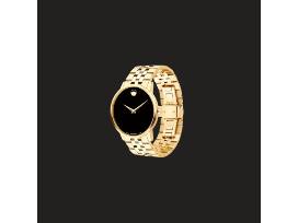 From the Movado Museum Classic collection, this men's watch features a black dial with the signature dot 12 o'clock marker and sapphire crystal in a 40.0mm gold-toned PVD-plated stainless steel case. The reliable Swiss quartz movement ensures accurate time keeping. The gold-toned PVD-plated stainless steel link bracelet secures with a push-button deployment clasp. Water-resistant to 30 meters, this watch comes with a two-year limited manufacturer warranty.