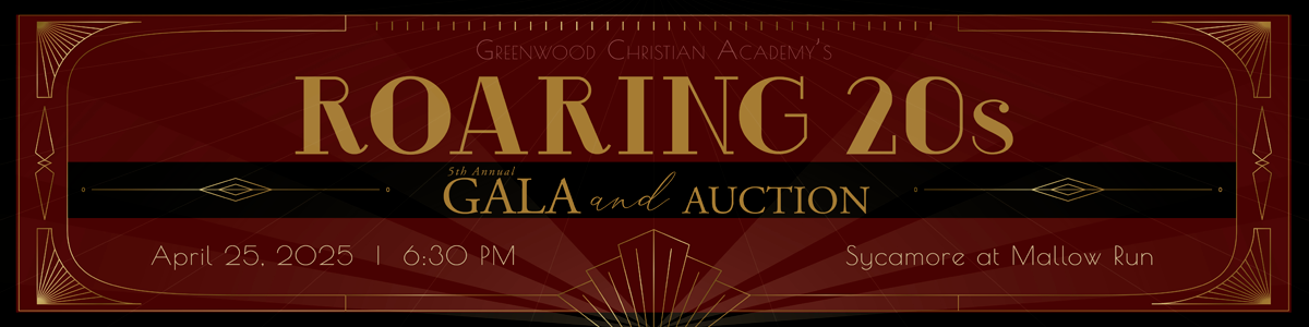What is the GCA Gala? It's a semi-formal evening of celebration and fun for supporters of Greenwood Christian Academy. We are excited to announce that this year's gala will have a "Roaring 20's" theme! We would love to see you dressed in your best 20's attire to make the evening even more fun! Attendees can bid on auction items, enjoy dinner and great fellowship, and raise money in support of the school's next steps. It is the largest fundraiser for GCA with a goal of raising more than $150,000 through sponsorships, donations, and auction purchases. Anyone can participate in the online silent auction, but only those present may participate in the LIVE auction.