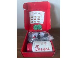 Enjoy this fun gift set from Chick-fil-A. You'll receive 3 coupons good for your choice of a small Chick-Fil-A minis, nuggets, or a grilled chicken sub sandwich tray. Along with a bottle of chick fil a sauce, a key ring, and a small stuffed animal cow.