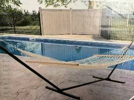 Relax and enjoy the moment with the warmth of this propane patio heater in your beautiful backyard. Let the warm and cozy atmosphere envelope you, while you stretch out in this 5.9ft x 4.3ft (lying area) rope hammock and stand set from Room & Retreat collection (450lb weight capacity).