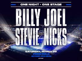 Billy Joel - one of the most respected recording artists in history - makes his Ford Field debut alongside Stevie Nicks for a special one-night-only performance in Detroit, MI, on Saturday, March 29, 2025. These iconic musicians will perform their most beloved songs from their illustrious careers. The spectacular show promises to be an unforgettable evening of live music. The concert is a must see with two (2) tickets in section 220, row 7 and seats18 and 19. Package includes a $150 gift card to Fishbones Restaurant in Greektown and one (1) night stay and parking at Hotel Saint Regis Detroit.
