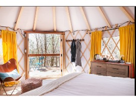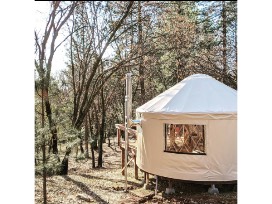 Escape to a charming 16ft yurt for 2 nights nestled in a serene forest setting-a perfect retreat for those who embrace a touch of rustic adventure. Cozy and private, the yurt stays warm with a wood stove in winter and offers a refreshing connection to nature in the summer. A short walk leads to a bathroom (150 ft away) and a shower house nearby.
