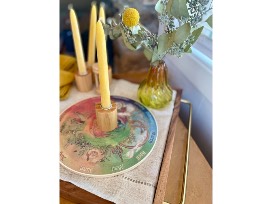 * 4 wooden candle holders with beeswax candles