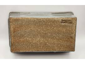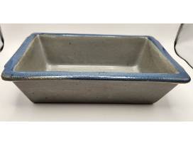 The bread pan is stamp with 1854-2004 in honor of the sesquicentennial of the Iowa State Fair. Created by Dahlquist Clayworks. It measures 10.75" x 6.5" x 3".