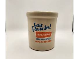 This 1 quart crock features the 2019 theme - "Fair Favorites". It is 5.5"H x 4.5"W.