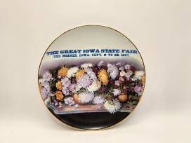 This 8" porcelain plate, rimmed with gold, features an historic poster image. This piece was a sample that became a souvenir item.