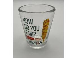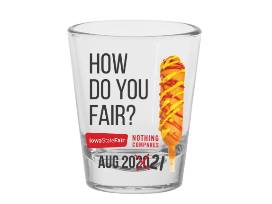 "How Do You Fair?" was originally the theme for the 2020 Iowa State Fair but became the 2021 theme. This shot glass features that logo with a nod to the Fair that didn't happen.