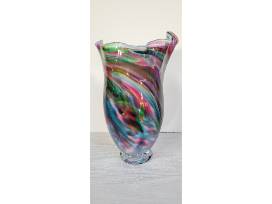 Winning bidder receives this multi-colored vase with a rippled lip and clear glass foot, measuring 10" high and 6" wide.