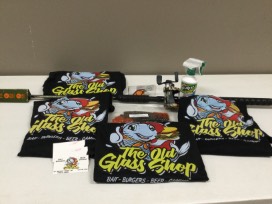 Thanks to The Old Glass Shoppe, the winner will get 2- Large shirts, 2- XL shirts, $100 Gift card to restaurant, $50 gift card to bait shop, 2 kayaks all day rental.