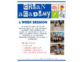 Is your future 4th - 6th grader ready to take on Crean Academy this summer? Get ready to experience a week of well-balanced fun & learning focusing on character, religion, exercise, academics, & nonsense. The objectives: have fun, exercise your body, excercise your brain, & tap into your creativity. Redeem for a one-week session.