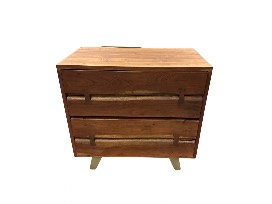 Features: metal base, 2 drawers, live edge face on drawers