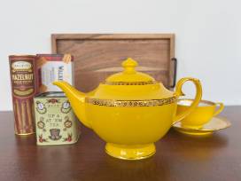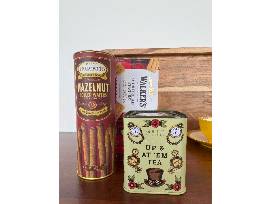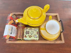 Take tea time to the next level with the discontinued yet unused Noble Poppy bone china tea set from Teavana. This set also comes with a tin of Bite Society's Breakfast Blend Tea "Up & At 'Em," a blend of organic Ceylon and organic Assam teas stored in a souvenir tin and decorated with steampunk art by Seattle tattoo artists. Set also includes a lovely wooden tray, box of hazelnut rolled waffers, and Walker's Shortbread Fingers. Pinkies up!
