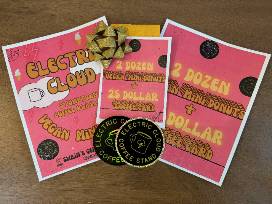 Electric Cloud's donuts are vegan, made fresh daily, and include daily and rotating flavors like maple glaze, chocolate sprinkle, cinnamon sugar, and more!