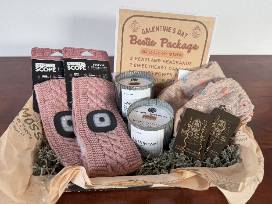 MOSS' Bestie Package Gives you an adorable bundle to keep and one to give away! Includes: 2 headlamp headbands from Night Scope, 2 sweetheart candles from Anchored Northwest, 2 Flower Power socks, and 2 Quartz Drop Earrings by Hayley Sharpe herself. We're in love!