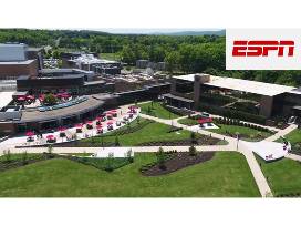 ESPN Headquarters is home to one of the world's largest and most technologically advanced TV production facilities. Digital Center-1 (2004) and Digital Center-2 (2014) total more than 400,000 square feet. They serve as home for SportsCenter, NFL programming and more. Overall, ESPN Plaza is home to 19 buildings on 120 acres and 1.3 million square feet of office/production space.