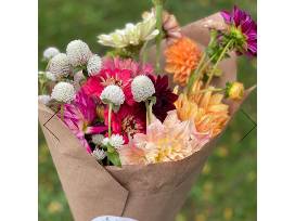 5 seasonal locally grown flower wraps to be delivered April-September featuring flowers such as double tulips, peonies, dahlias & more (exact dates to be arranged).