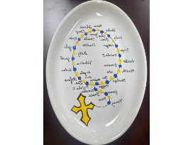 This communion platter is beautifully hand painted and decorated by each of the students in Mrs. Michel's and Ms. Aguada's 2nd grade classes. Special thanks to our art teacher, Mrs. McGovern, for her help with designing this masterpiece.