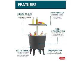 Whether you want a stylish accent table or a functional entertaining accessory, you can have it all with the Cool Bar from Keter. It is the ultimate 3-in-1 backyard solution: part cooler, part coffee table or part cocktail table. It's perfect for backyard barbecues, patio parties or just lounging on your patio or by the pool. Its compact design will easily fit into the layout of even the smallest deck, patio or yard space. If you have larger outdoor living areas, you can place one on either side of each sofa, loveseat or chair to use as end tables. Want to convert your Cool Bar from cooler/coffee table into a party-perfect cocktail table Simply lift the lid and twist the locking ring. The Cool Bar's 7.5 Gal. cooler can keep drinks chilled for more than 12-hours. The top rises smoothly from 22.5 in. to 32.5 in. in overall height and locks into place to prevent it from falling when topped with party provisions. And when you are done, simply remove the built-in drainage plug for easy cleanup.