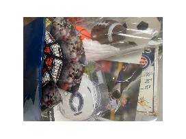 Calling all Chicago area fans! Included in this basket is 4 tickets to a Schaumburg Boomers game, a signed picture of Cubs player Nick Madrigal, 4 small rubber sports balls, Chicago Bears mini helmet, and a metal vintage Cubs concessions sign. Valued at over $100!