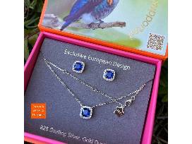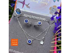 Material: The necklace, earrings, and cocktail ring are crafted from solid 925 sterling silver and overlaid with platinum to ensure durability and a luxurious finish. Each lab-created sapphire is carefully selected for its deep, rich color and brilliance. The chain measures 18 inches and has a lobster clasp. All pieces in the set are hypoallergenic.