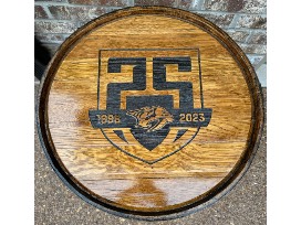 Jack Daniel's Whiskey Barrel w/ Nashville Predator's 25th Anniversary logo on top that's been sanded, stained and sealed. (empty)