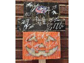 Get ready to elevate your Halloween decor with this one-of-a-kind Jack-O-Lantern yard sign, uniquely signed by members of the 24-25 Columbus Blue Jackets roster! This festive piece is not just a charming addition to your front yard; it's a collector's item that any hockey fan would cherish. Don't miss your chance to own this unique item. Whether you're a die-hard Blue Jackets fan or just love Halloween, this signed yard sign is sure to be a conversation starter!
