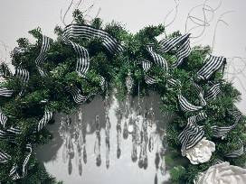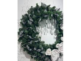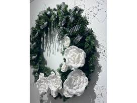 In the spirit of Coco Chanel, this wreath was inspired by her classic colors of black and white and signature flower, the Camellia. Taking a cue from her classic and timeless designs, this wreath is both simple and elegant, with some Avant Garde details, as seen with the chandelier icicles hanging from the center. Just like a treasured Chanel piece, I hope you will enjoy this wreath for many years to come!