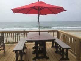 This oceanfront 4 bedroom, 3 bathroom home has plenty of room for your crew! Bedrooms feature: bunk room with 4 twin beds, bedroom with queen + twin, bedroom with queen only, bedroom with king. Enjoy a wonderful 2 level deck just steps away from the sand!