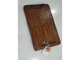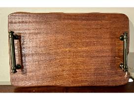 This beautiful hand-crafted charcuterie board is made from Ironwood with iron handles and measures 10" x 14".