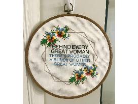 Bring home a motivational message - either for yourself or for the women who inspire you! All handmade cross-stitch. "Behind Every Great Woman There's Probably A Bunch of Other Great Women"
