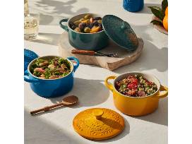 Bring peace and joy to your kitchen with the Olive Branch collection by Le Creuset. The definition of timeless artistry, the enameled cast iron of Le Creuset has brought color and peak functionality into kitchens around the globe for more than 100 years. The deep indigo of this set combined with the embossed details of the stunning Olive Branch Collection will add depth and class to any cookware collection. Coveted by home cooks and praised by chefs, Le Creuset is a symbol of tradition and performance.
