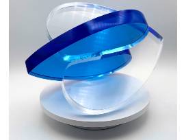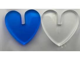 Michael Gitter interlocking hearts. One clear with wings cut in to them, matched with a translucent OCEAN blue 9" x 9" x 1" thick Lucite. https://lovesculptures.com/products/blue-x-clear