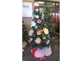 The QR codes on the tree take you to the Facebook page for Emily's HugMee Drive, so guests can learn more about Emily and her journey. Help us reach our goal of donating over 1000 Squishmallows this year to patients at Reilly Children's Hospital in Allentown.