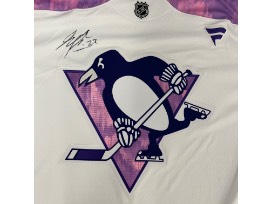 Bid to win this one-of-a-kind specialty Hockey Fights Cancer jersey, autographed by Sam Poulin and WORN during the UPMC Children's Hospital visit on November 12, 2024 in honor of all who have been impacted by cancer.
