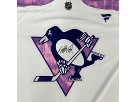 Bid to win this one-of-a-kind specialty Hockey Fights Cancer jersey, autographed by Tristan Jarry and WORN during the UPMC Children's Hospital visit on November 12, 2024 in honor of all who have been impacted by cancer.