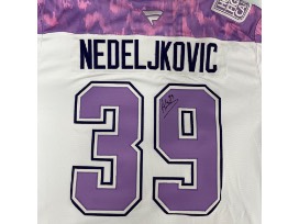 Bid to win this one-of-a-kind specialty Hockey Fights Cancer jersey, autographed by Alex Nedeljkovic and WORN during the UPMC Children's Hospital visit on November 12, 2024 in honor of all who have been impacted by cancer.