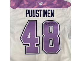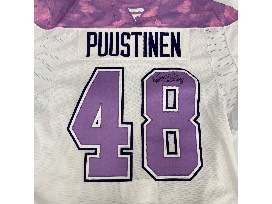 Bid to win this one-of-a-kind specialty Hockey Fights Cancer jersey, autographed by Valtteri Puustinen and WORN during the UPMC Children's Hospital visit on November 12, 2024 in honor of all who have been impacted by cancer.