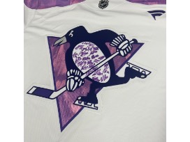 Bid to win this Pittsburgh Penguins Hockey Fights Cancer style jersey, autographed by members of the 2024.25 Pittsburgh Penguins Current Roster as of October 28, 2024.