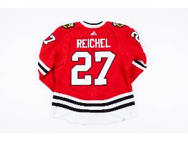 This game-used red jersey was worn by Lukas Reichel during his rookie season of 2022-2023. The jersey was worn during the March 6 game against the Ottawa Senators, the March 26 game against the Vancouver Canucks, the March 28 game against the Dallas Stars, and the March 30 game against the St. Louis Blues.
