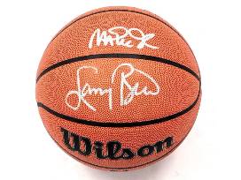 Basketball signed by NBA legends Larry Bird and Magic Johnson