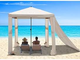 6.2' x 6' Vibemo Beach Cabana, 2 Turkish Beach Towels, 2 Tommy Bahama High Boy Chairs