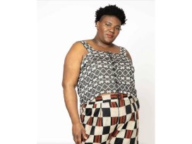 ace&jig button up sleeveless cropped top with shoulder straps. made in our derby textile, a supersoft, luxe black doublegauze with gingham pattern in black and white.