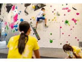 We are a bouldering-only gym which is one of the reasons we can be open 24/7. We have walls at different angles and problems set for all body types and skill levels. There is a rooftop cafe, sauna, showers and kids are welcome with supervision.