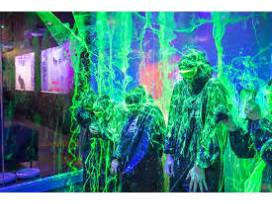 - Choose the paint, slime or foam mission. Wearing haz mat suits, advance through 5 hi-tech video game rooms.