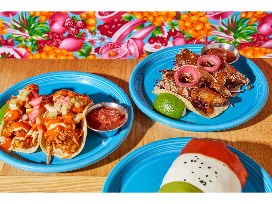 Plant-based street food with options for both comfort and health. Fresh cocktails, latino music, and vacation vibes transport you to a party in Mexico. Serving lunch, dinner and brunch on the weekends.